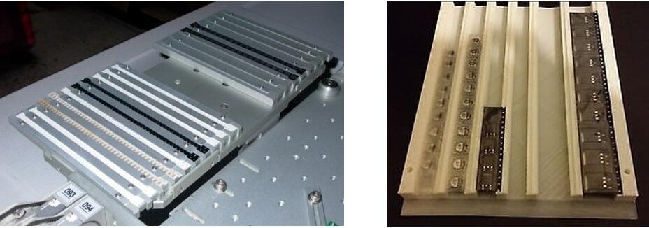 大多數(shù)PCB是由相當(dāng)堅(jiān)硬的1.6mm FR4材料制成的,但是當(dāng)使用較薄的材料或有槽縫時(shí),PCB的支撐將是一個(gè)挑戰(zhàn)。 在組件放置過(guò)程中,這可能導(dǎo)致不一致的結(jié)果,因?yàn)槭冀K會(huì)有一定數(shù)量的放置壓力-如果未完全支撐PCB,則它將發(fā)生撓曲。 設(shè)置支持可能很耗時(shí),因此可以在此處看到許多可用的自適應(yīng)系統(tǒng)。 靈活的支撐系統(tǒng)不僅可以快速設(shè)置,而且如果要在已將組件安裝到下側(cè)的情況下構(gòu)建雙面組件時(shí),它們也要考慮在內(nèi)。 在下面可以看到兩個(gè)最常見(jiàn)的解決方案,它們將自身模制在已放置的組件周?chē)?/span>