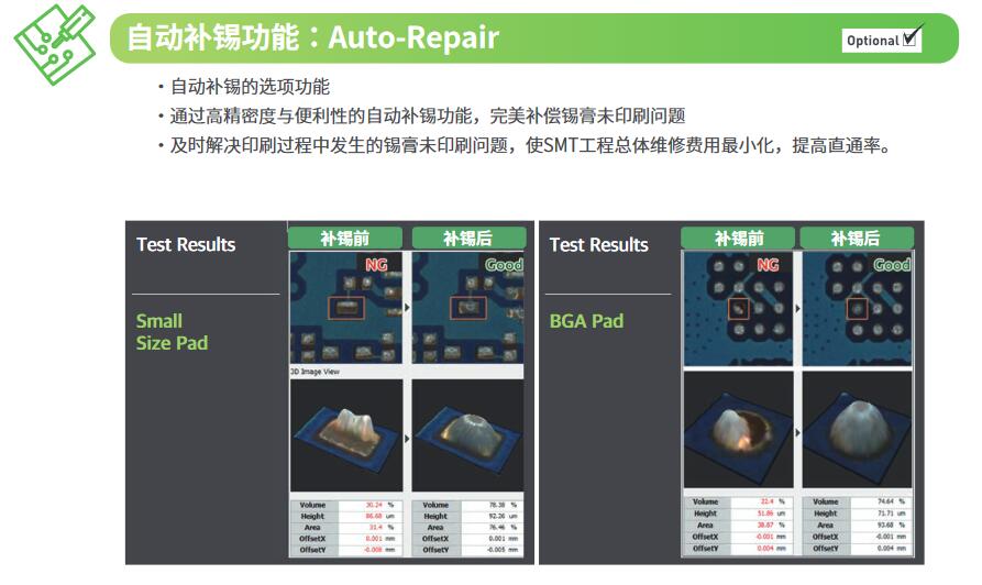 全三維測量檢測解決方案 - 通過使用雙向投影解決陰影問題 - 全三維異物檢測方案,適用于整個 PCB - 提供帶實時 PCB變形補償的精確檢測數據